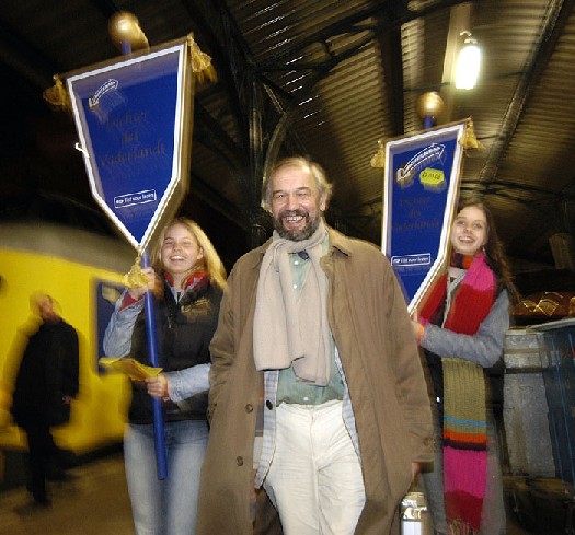 ![]() Driek van Wissen bij zijn aankomst in Goningen, 27-1-2005 © Henk Veenstra, 2005 De op 12 juli 1943 in Groningen geboren en getogen dichter en woordkunstenaar Driek van Wissen zal voor velen geen onbekende zijn. Naast zijn vaste rubriek in het Nieuwsblad van het Noorden, waarin hij eigenaardigheden van de Nederlandse taal uitlichtte (na te lezen in Het verkeerde woordenboek en Het verkeerde spreekwoordenboek (BZZTôH, 's-Gravenhage, 1996 en 1998) gaf hij wekelijks acte de présence in het Tros radio- en televisieprogramma 'Binnenlandse Zaken', waarin spitsvondig commentaar werd gegeven op de lopende zaken. In de jaren zeventig publiceerde hij onder het pseudoniem Albert Zondervan samen met Jean Pierre Rawie verzen in het satirische Groninger studentenblad 'De Nieuwe Klerke', waarvan ze beiden de drijvende krachten waren. Na samen met Rawie de bundel De match Luteijn Donner: een schaakcursus in twee maal twaalf sonnetten (Holmsterland, 1976) te hebben uitgebracht, debuteerde Van Wissen in 1978 met Het mooiste meisje van de klas (C.J. Aarts, Amsterdam). Sedertdien volgden nog tal van bundels, taalboeken en bloemlezingen. Zijn recentste dichtbundel is De hap van Adam (Arbeiderspers, Amsterdam, 1999). Naast vormvast dichter is hij leraar Nederlands aan het Aletta Jacobs College te Hoogezand. In 2001 schreef hij dagelijks een gedicht voor de site www.gedicht.nl. Op 26 januari 2005 werd hij verkozen tot derde Dichter des Vaderlands. Vier jaar zal hij deze functie vervullen. Zijn voorgangers waren Gerrit Komrij (2000-2004) en Simon Vinkenoog (2004-2005). Meer over al deze verkiezingen is te vinden op Rottend Staal. Zie ook www.google.com voor meer over Driek van Wissen. terug naar boven Dichtbundels: De match Luteijn Donner: een schaakcursus in twee maal twaalf sonnetten (samen met Jean Pierre Rawie), Holmsterland, 1976 (1979 2de druk bij Aarts, Amsterdam, 3e herziene druk bij Bert Bakker, Amsterdam, 1983) Het mooiste meisje van de klas, Aarts, Amsterdam, 1978 Meisjesgenade, Aarts, Amsterdam, 1980 De badman heeft gelijk, Bert Bakker, Amsterdam, 1982 Dartele dactylus; ollekebollekes nieuwste verzameling metrisch plezier (door Drs. P, Jean Pierre Rawie, Driek van Wissen en Ivo de Wijs), Bert Bakker, Amsterdam, 1984 Letterkundig verskwartet, Amsterdam, 1985 De volle mep. Gedichten 1978-1987. Het mooiste meisje van de klas. Meisjesgenade. De badman heeft gelijk. Veertig plus. De kastelein van Sier, Bert Bakker, Amsterdam, 1987 Gezichtsbedrog, Exponent, Bedum, 1992 Een loopje met de tijd, Bert Bakker, Amsterdam, 1993 De hap van Adam, Arbeiderspers, Amsterdam, 1999 Onverwoestbaar mooi, verzamelde gedichten, Nijgh & van Ditmar, Amsterdam, 2003 De Dichter des Vaderlands. Zijn mooiste verzen. Samenstelling Jean Pierre Rawie, Nijgh & van Ditmar, Amsterdam, 2005 terug naar boven POËZIE PEKINEES ETEN In China at ik vaak mijn buikje rond, Maar toen ik eenmaal happig wilde weten Hoe het gerecht tussen mijn stokjes heette Kreeg ik als antwoord kort en bondig: hond! Mijn hemel, ik had zomaar hond gegeten, Besefte ik verschrikt met volle mond, Doch omdat ik de smaak best prettig vond Bekroop mij toch de lust om door te eten. En toen het mormel mij voor ogen stond Dat thuis vaak op mijn stoepje had gescheten En dat ooit na een trap onder zijn kont Mijn dure broek aan stukken had gereten En mij vervolgens bloedig had verwond Heb ik de hond eens lekker teruggebeten. © Driek van Wissen, 2004 OP DE RAILS Mijn trein gaat ogenschijnlijk rijden, Want spoorwagon na spoorwagon Links op een parallel perron Zie ik langs mijn coupéruit glijden. Maar dan verbreedt de horizon En blijkt dat ik mij liet misleiden: De trein is weg ter linkerzijde En ik sta nog op het station Zo worden wij wel meer bedrogen: Wij zijn op reis, zo menen wij En maken voortgang zienderogen, Doch richten wij de blik opzij Dan staan wij stil en onbewogen. Het leven gaat aan ons voorbij. © Driek van Wissen, 2004 OUD ZEER